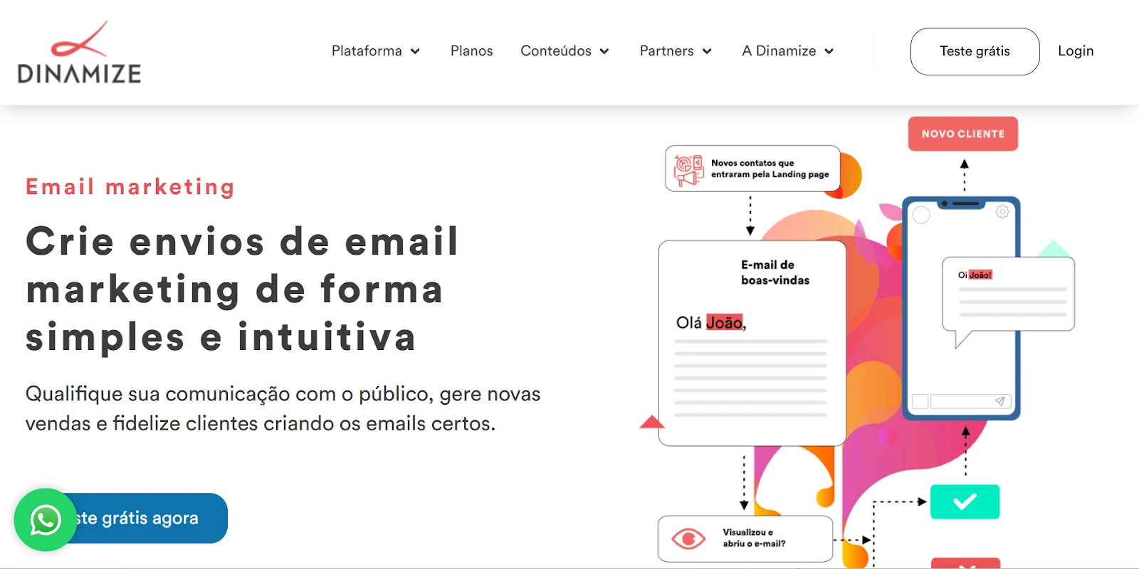 A Dinamize é uma plataforma brasileira voltada principalmente a empresas que já têm operações mais estruturadas e equipes dedicadas. Ela atende bem negócios que precisam de controle, personalização e gestão avançada de campanhas. Não é a ferramenta mais simples para começar, mas é forte para quem já tem volume e uma estratégia definida.